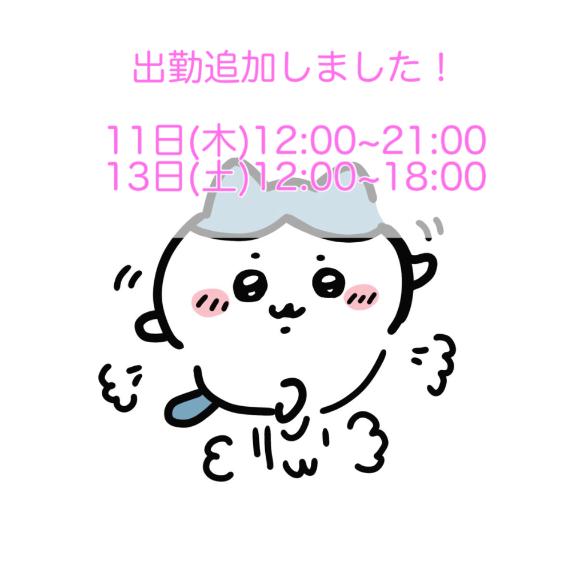 | 12月12日(金) | 次回12/13(土)出勤予定♪ |